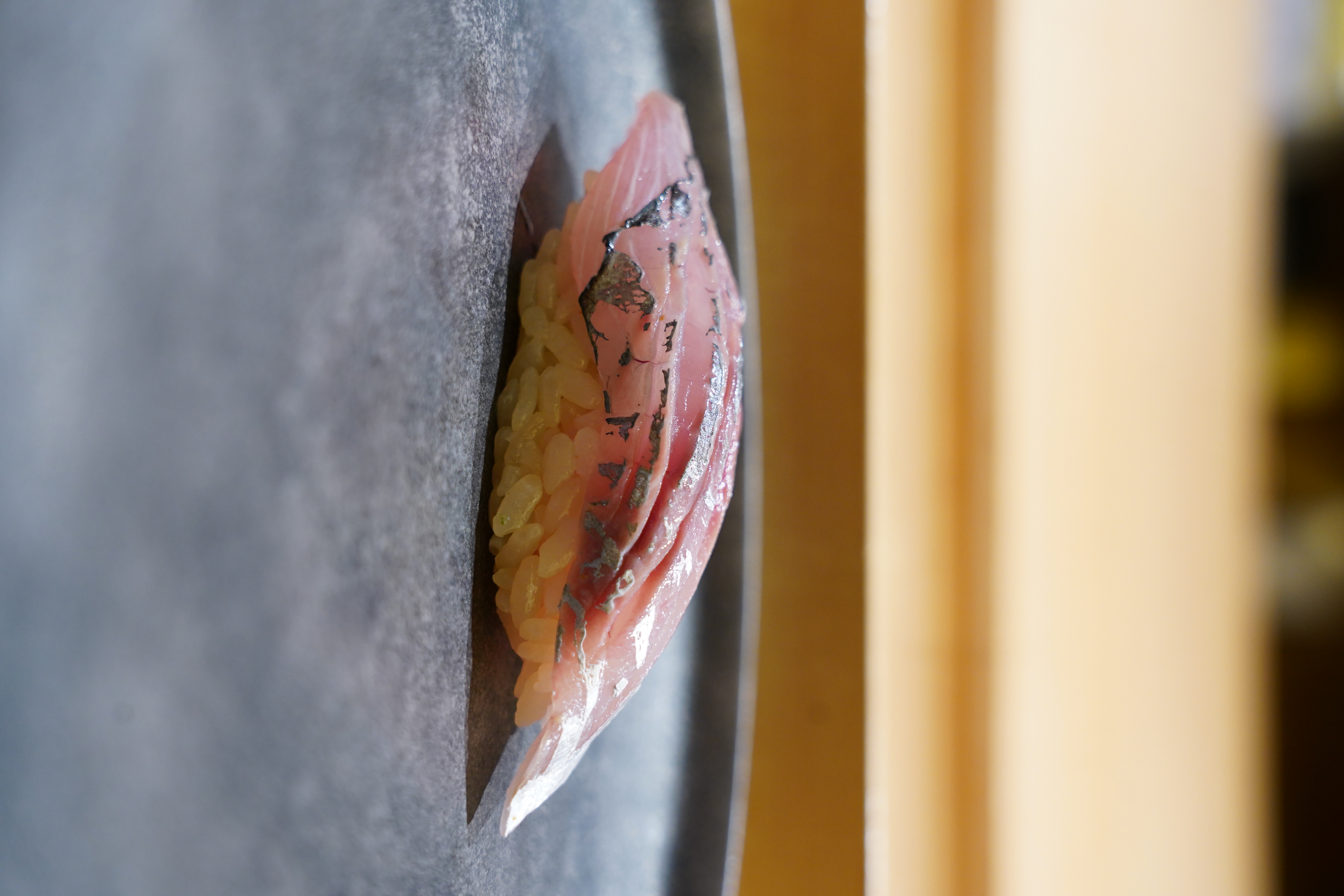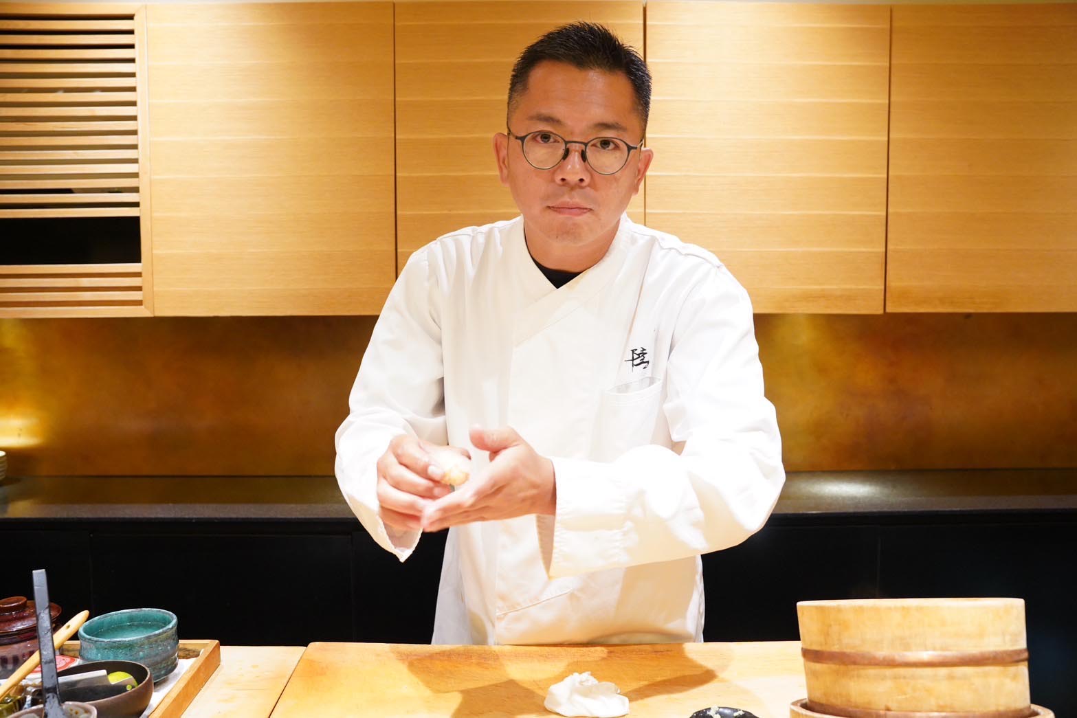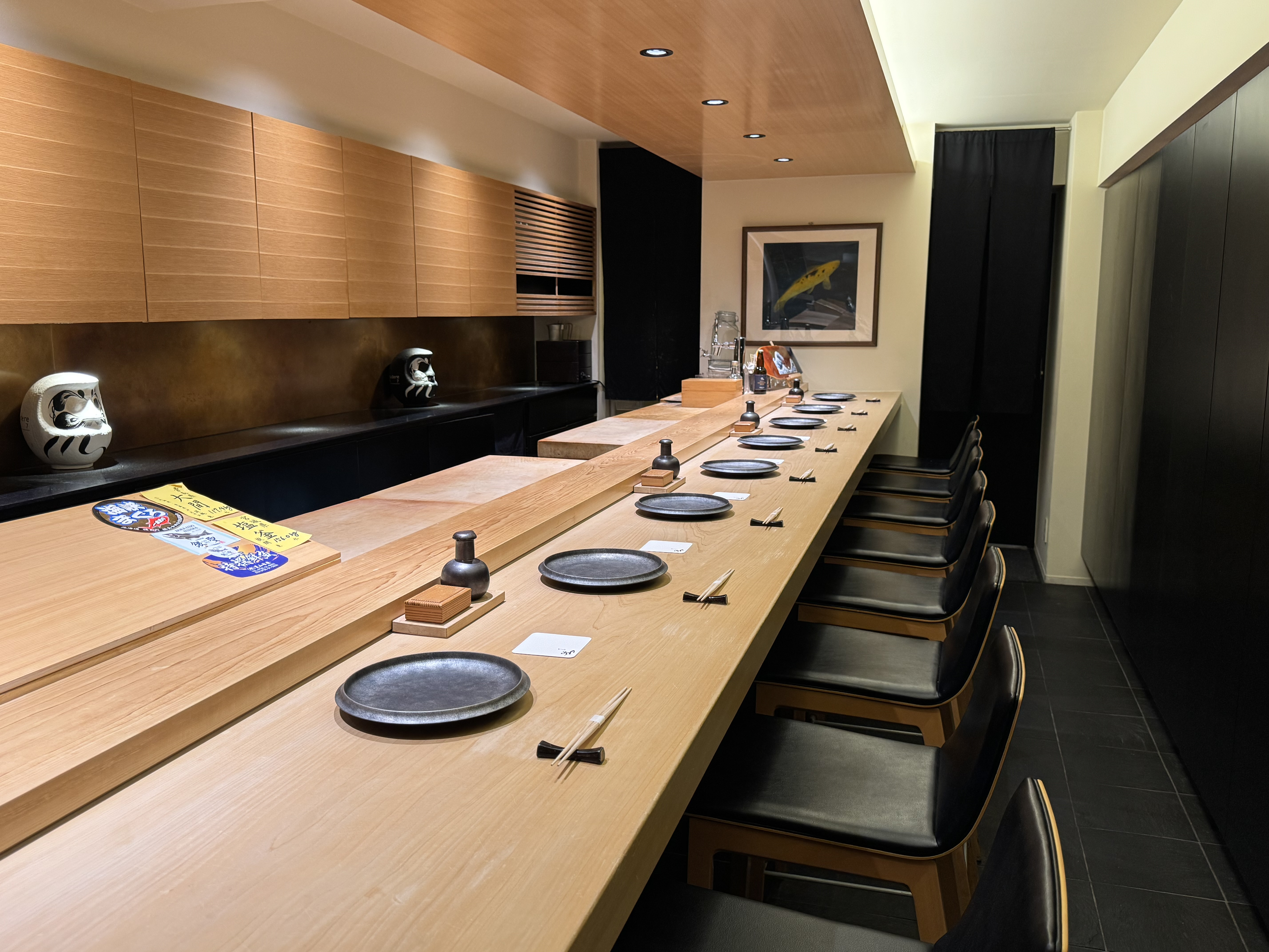 店内の中心に据えられたのは、三重県より厳選した六メートルの檜の一枚カウンター。