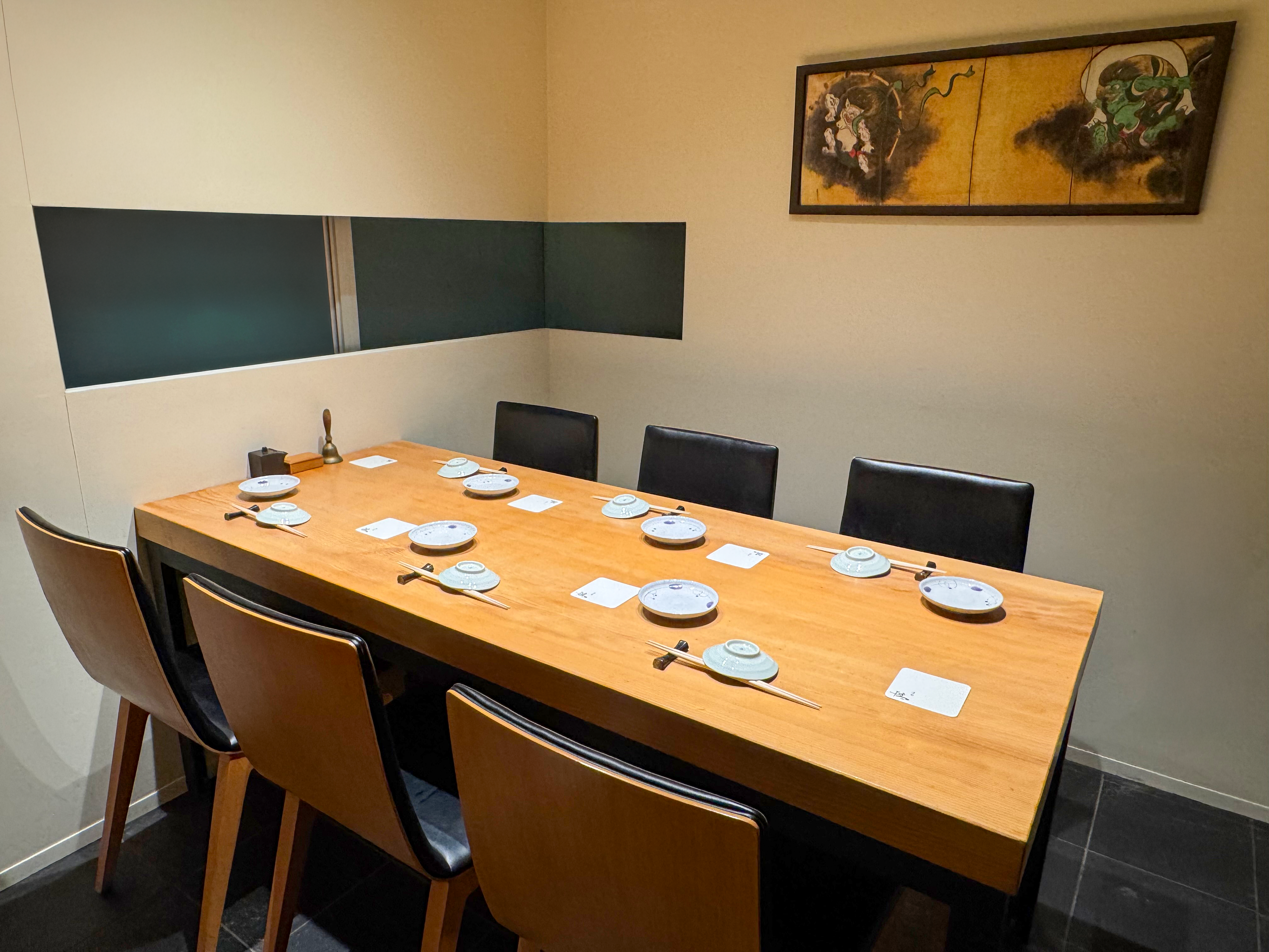 周りを気にせず、ゆったりとお食事をお楽しみいただける完全個室をご用意しております。 温かみのある木のテーブルと、静寂の中に品格を感じさせる空間は、ご接待やご家族での記念日、両家のお顔合わせなど、特別なひとときを過ごすのに最適です。 職人が握るこだわりの一貫を、プライベートな空間で心ゆくまでご堪能ください。
